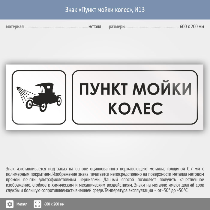 Знак «Пункт мойки колес», И13 (металл, 600х200 мм) в Альметьевске купить