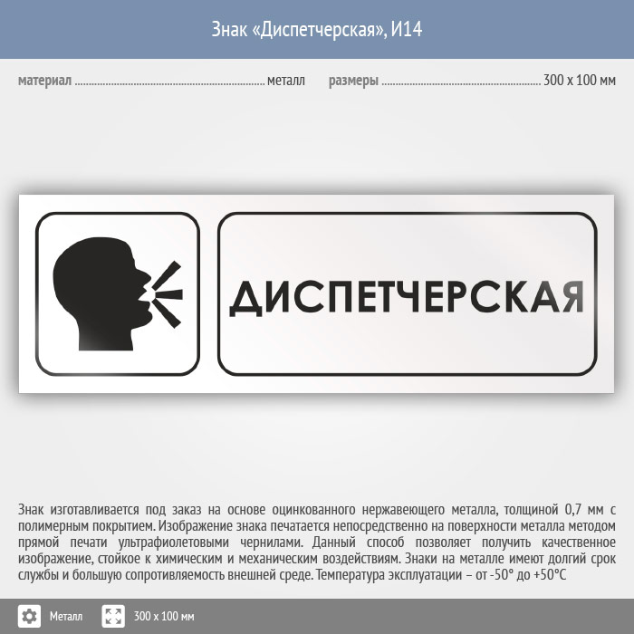 Знак «Диспетчерская», И14 (металл, 300х100 мм) в Альметьевске купить