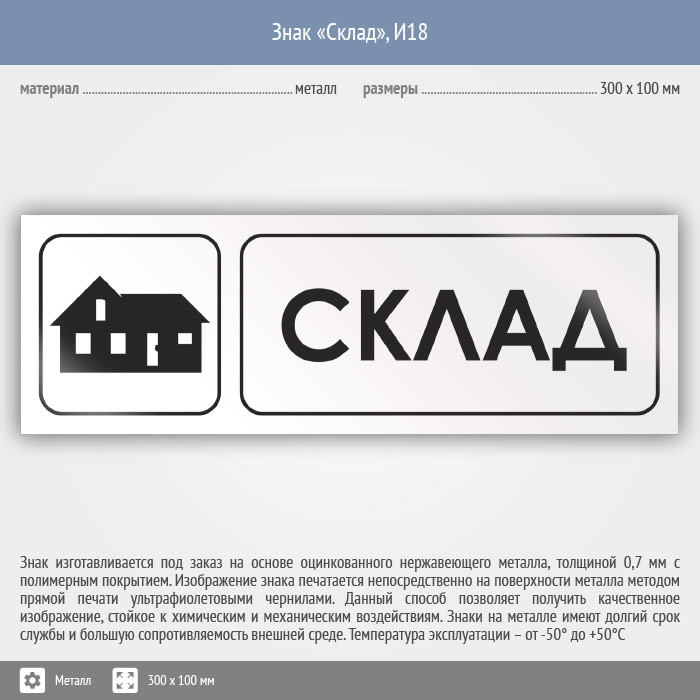 Знак «Склад», И18 (металл, 300х100 мм) в Альметьевске купить
