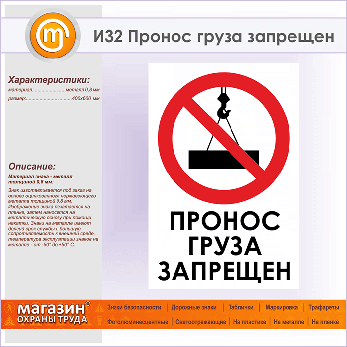 Знак «Пронос груза запрещен», И32 (металл, 400х600 мм) в Альметьевске купить