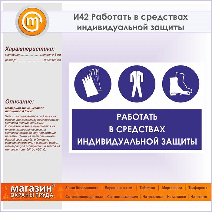 Знак «Работать в средствах индивидуальной защиты», И42 (металл, 900х600 мм) в Альметьевске купить