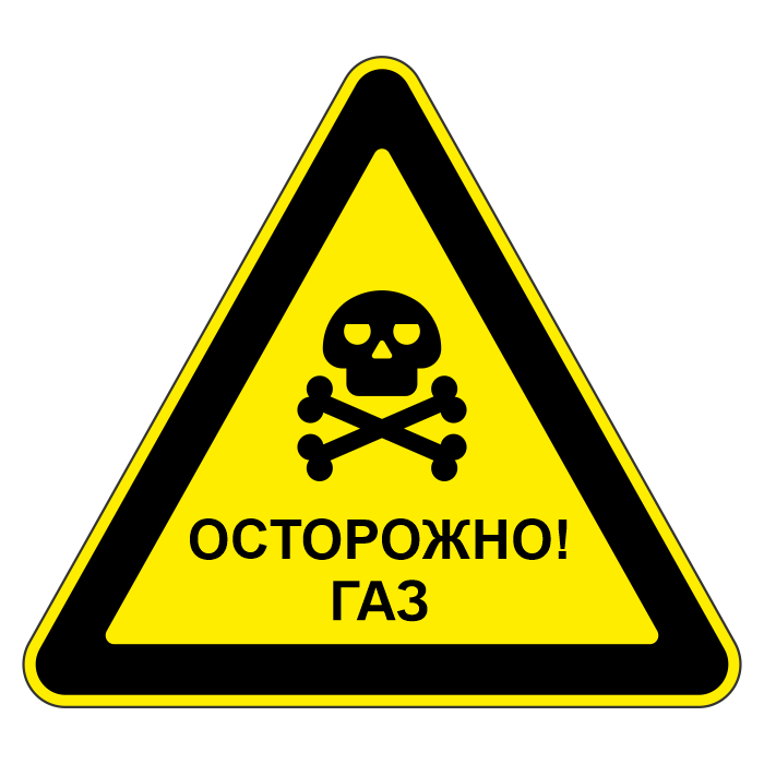 Знак «Осторожно! Газ», МГ-6 (металл 0,8 мм, II типоразмер: сторона 900 мм, С/О пленка: тип Б высокоинтенсивная) в Альметьевске купить