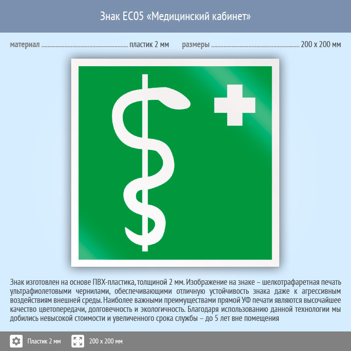 Знак EC05 «Медицинский кабинет» (пластик, 200х200 мм) в Альметьевске купить