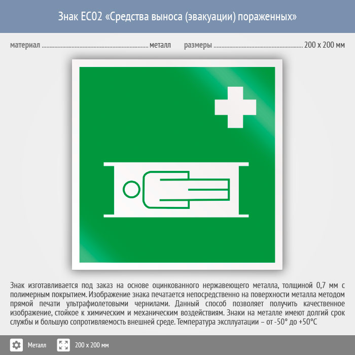 Знак EC02 «Средства выноса (эвакуации) пораженных» (металл, 200х200 мм) в Альметьевске купить