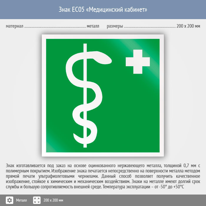Знак EC05 «Медицинский кабинет» (металл, 200х200 мм) в Альметьевске купить