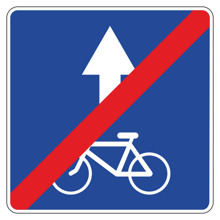 Дорожный знак 5.14.3 «Конец полосы для велосипедистов» (металл 0,8 мм, II типоразмер: сторона 700 мм, С/О пленка: тип А инженерная) в Альметьевске купить