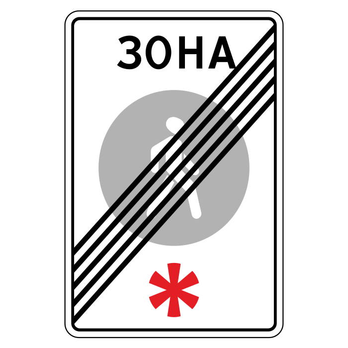 Дорожный знак 5.34 «Конец пешеходной зоны» (металл 0,8 мм, I типоразмер: 900х600 мм, С/О пленка: тип В алмазная) в Альметьевске купить