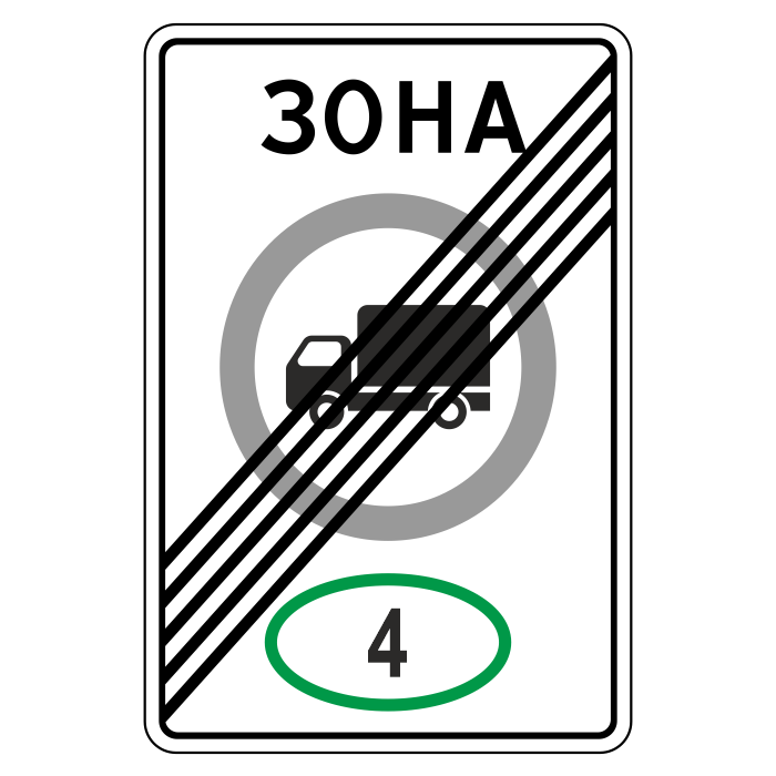Дорожный знак 5.37 «Конец зоны с ограничением экологического класса грузовых автомобилей» (металл 0,8 мм, I типоразмер: 900х600 мм, С/О пленка: тип Б высокоинтенсивная) в Альметьевске купить