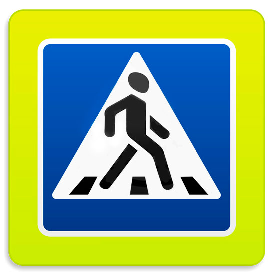 Дорожный знак 5.19.2д «Пешеходный переход» флуоресцентный (металл 0,8 мм, II типоразмер + кант: сторона 900 мм, С/О пленка: тип В алмазная) в Альметьевске купить