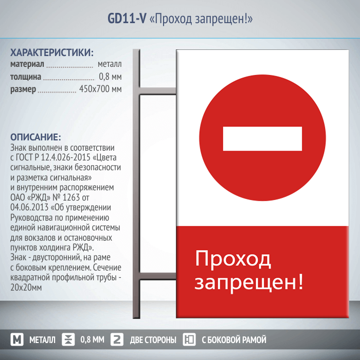 Знак «Проход запрещен!», GD11-V (двусторонний вертикальный, 450х700 мм, металл, на раме с боковым креплением) в Альметьевске купить