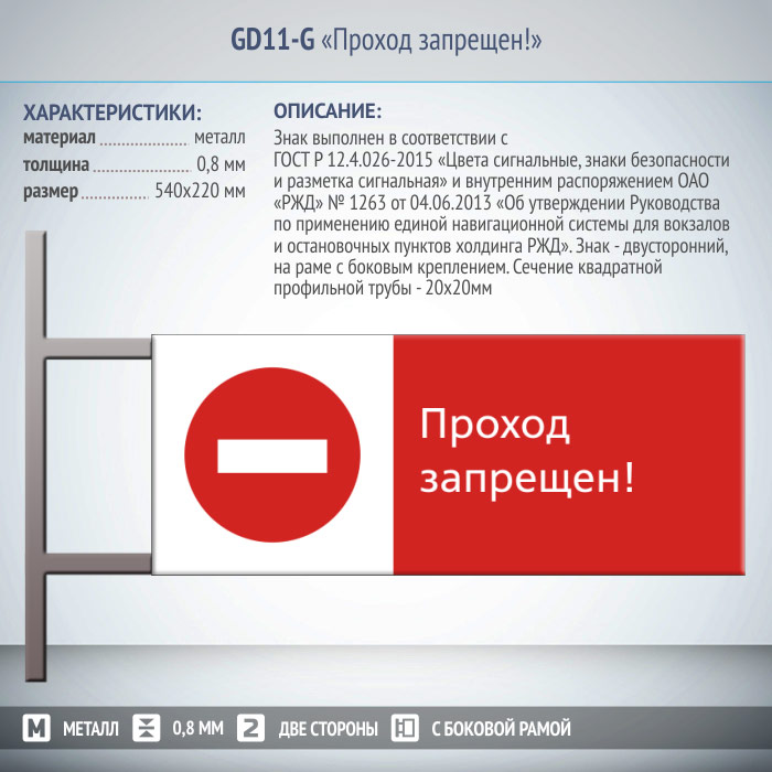 Знак «Проход запрещен!», GD11-G (двусторонний горизонтальный, 540х220 мм, металл, на раме с боковым креплением) в Альметьевске купить