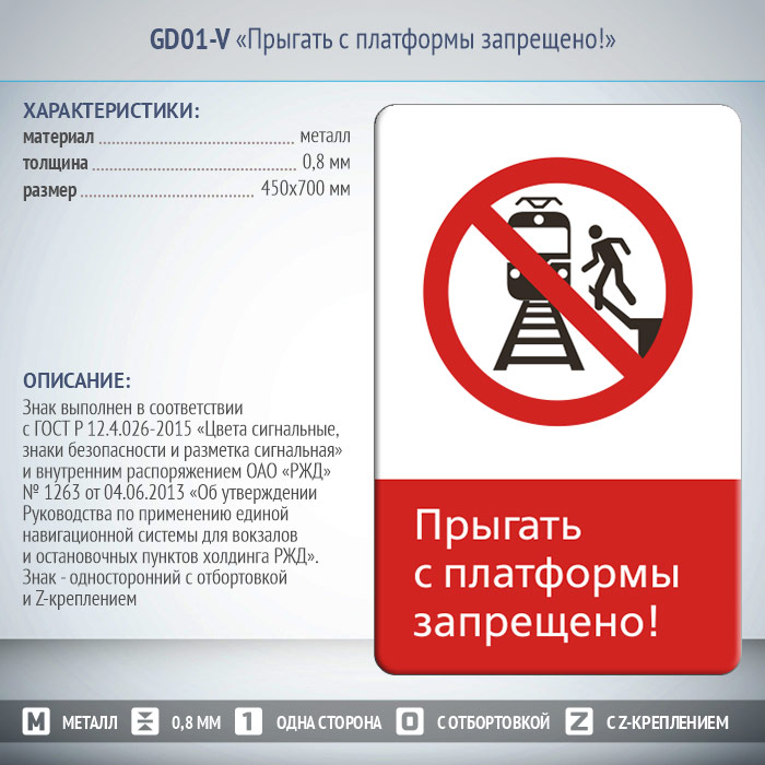 Знак «Прыгать с платформы запрещено!», GD01-V (односторонний вертикальный, 450х700 мм, металл, с отбортовкой и Z-креплением) в Альметьевске купить