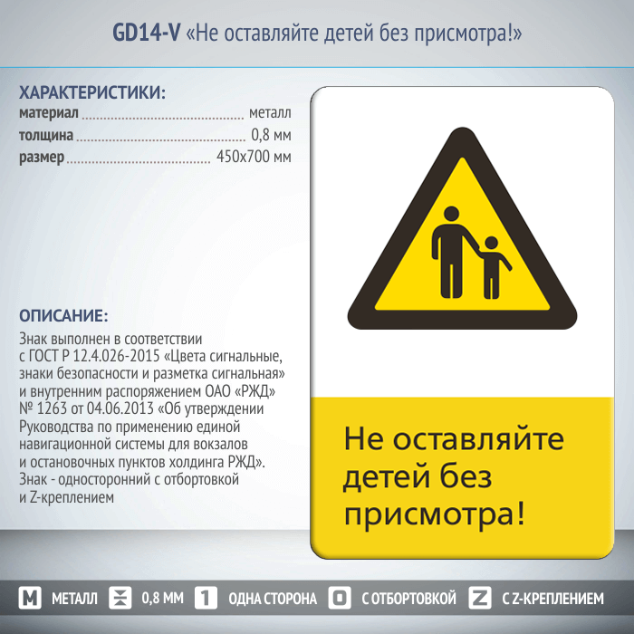 Знак «Не оставляйте детей без присмотра!», GD14-V (односторонний вертикальный, 450х700 мм, металл, с отбортовкой и Z-креплением) в Альметьевске купить
