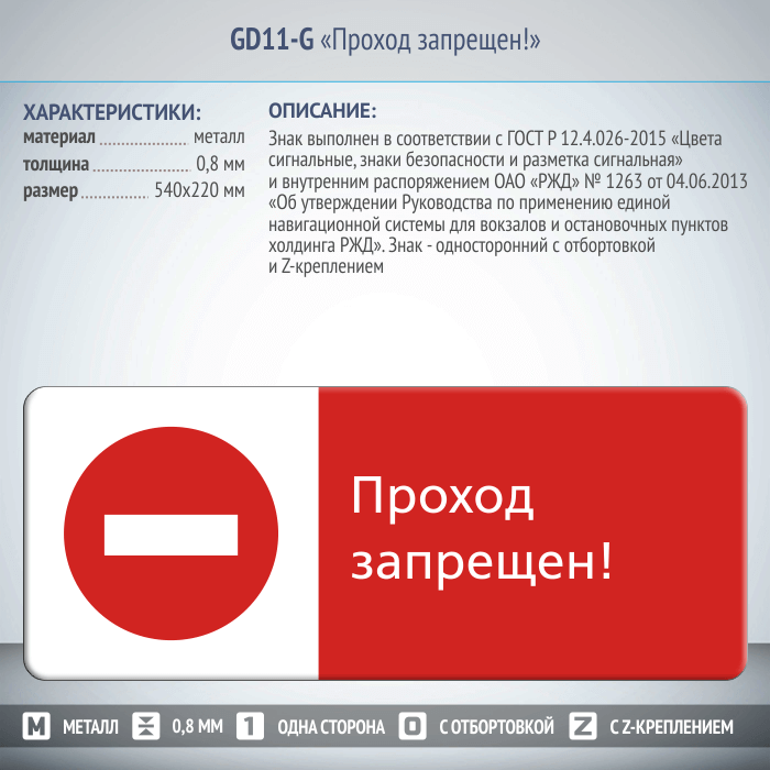 Знак «Проход запрещен!», GD11-G (односторонний горизонтальный, 540х220 мм, металл, с отбортовкой и Z-креплением) в Альметьевске купить