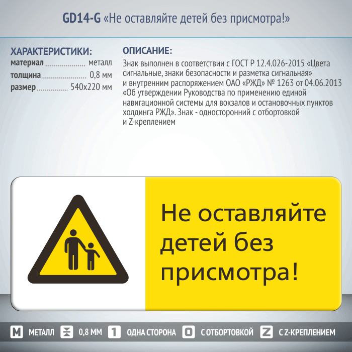 Знак «Не оставляйте детей без присмотра!», GD14-G (односторонний горизонтальный, 540х220 мм, металл, с отбортовкой и Z-креплением) в Альметьевске купить