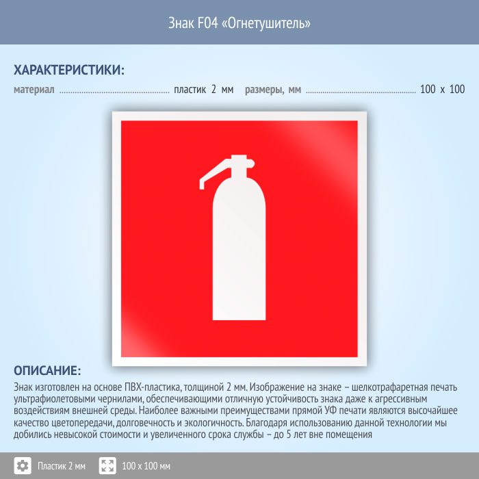 Знак F04 «Огнетушитель» (пластик, 100х100 мм) в Альметьевске купить