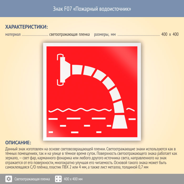 Знак F07 «Пожарный водоисточник» (светоотражающая пленка, 400х400 мм) в Альметьевске купить