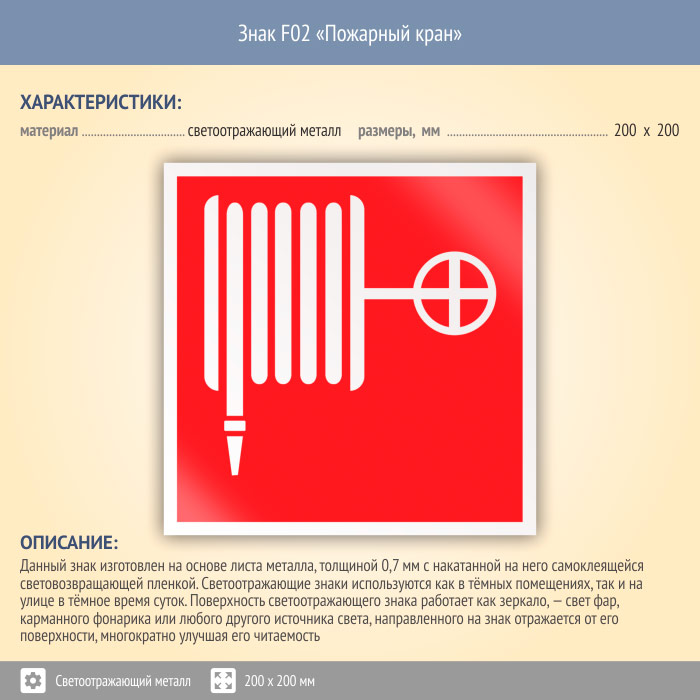 Знак F02 «Пожарный кран» (светоотражающий металл, 200х200 мм) в Альметьевске купить