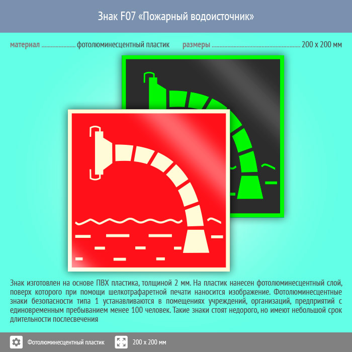 Знак F07 «Пожарный водоисточник» (фотолюминесцентный пластик, 200х200 мм) в Альметьевске купить