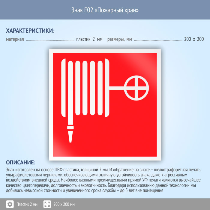 Знак F02 «Пожарный кран» (пластик, 200х200 мм) в Альметьевске купить