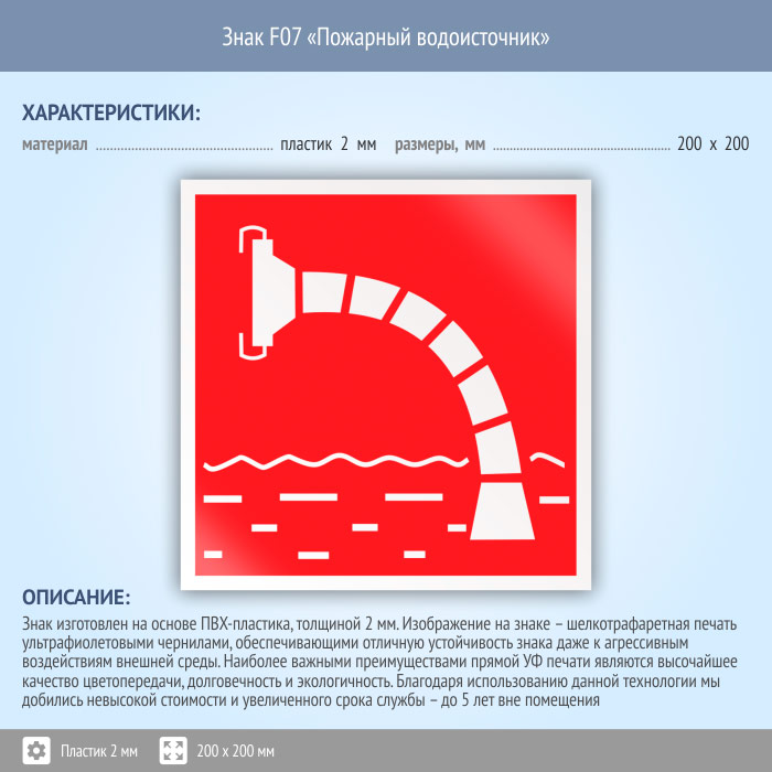 Знак F07 «Пожарный водоисточник» (пластик, 200х200 мм) в Альметьевске купить