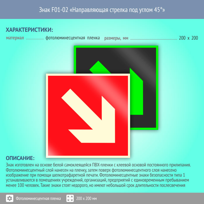Знак F01-02 «Направляющая стрелка под углом 45°» (фотолюминесцентная пленка, 200х200 мм) в Альметьевске купить