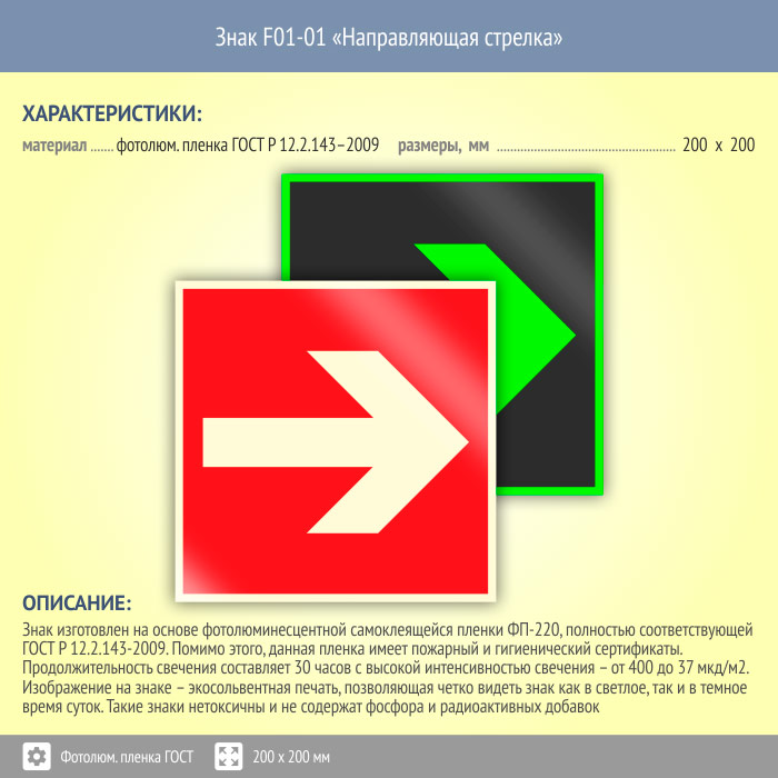 Знак F01-01 «Направляющая стрелка» (фотолюминесцентная пленка ГОСТ 34428-2018, 200х200 мм) в Альметьевске купить