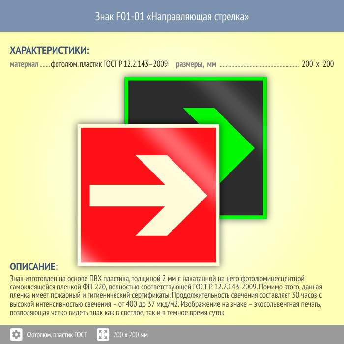 Знак F01-01 «Направляющая стрелка» (фотолюминесцентный пластик ГОСТ 34428-2018, 200х200 мм) в Альметьевске купить