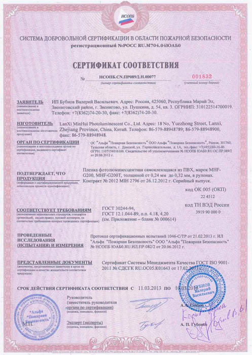 | Материал: | фотолюминесцентный пластик ГОСТ 34428-2018 | |