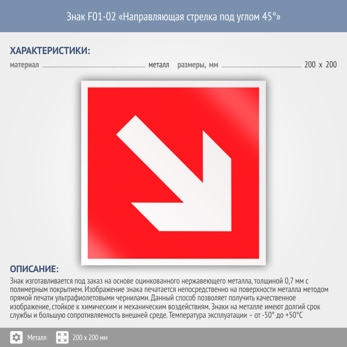 Знак F01-02 «Направляющая стрелка под углом 45°» (металл, 200х200 мм) в Альметьевске купить