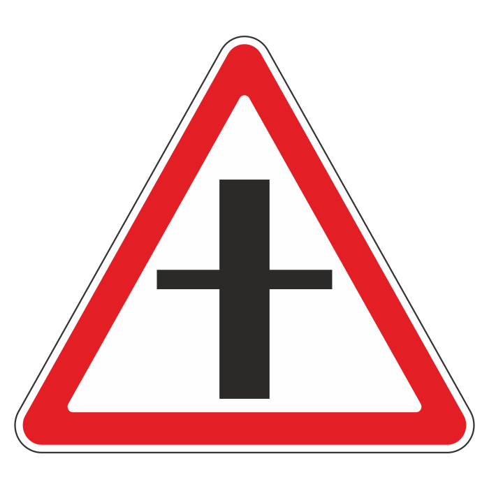 Дорожный знак 2.3.1 «Пересечение со второстепенной дорогой» (металл 0,8 мм, I типоразмер: сторона 700 мм, С/О пленка: тип В алмазная) в Альметьевске купить