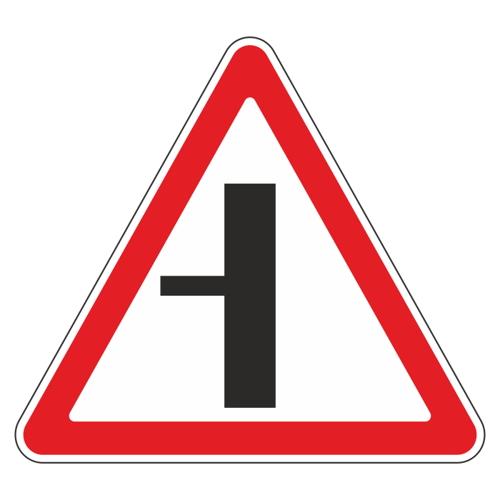 Дорожный знак 2.3.3 «Примыкание второстепенной дороги слева» (металл 0,8 мм, III типоразмер: сторона 1200 мм, С/О пленка: тип А инженерная) в Альметьевске купить
