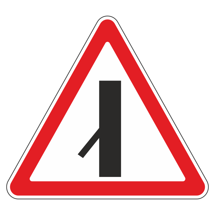 Дорожный знак 2.3.7 «Примыкание второстепенной дороги слева» (металл 0,8 мм, II типоразмер: сторона 900 мм, С/О пленка: тип В алмазная) в Альметьевске купить