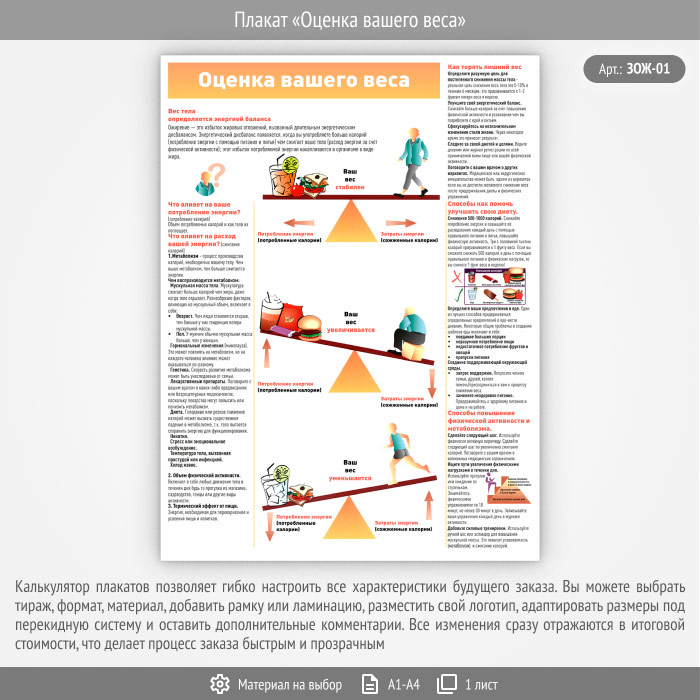 Плакат «Оценка вашего веса» (ЗОЖ-01, 1 лист) в Альметьевске купить