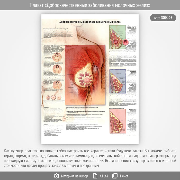 Плакат «Доброкачественные заболевания молочных желез» (ЗОЖ-08, 1 лист) в Альметьевске купить