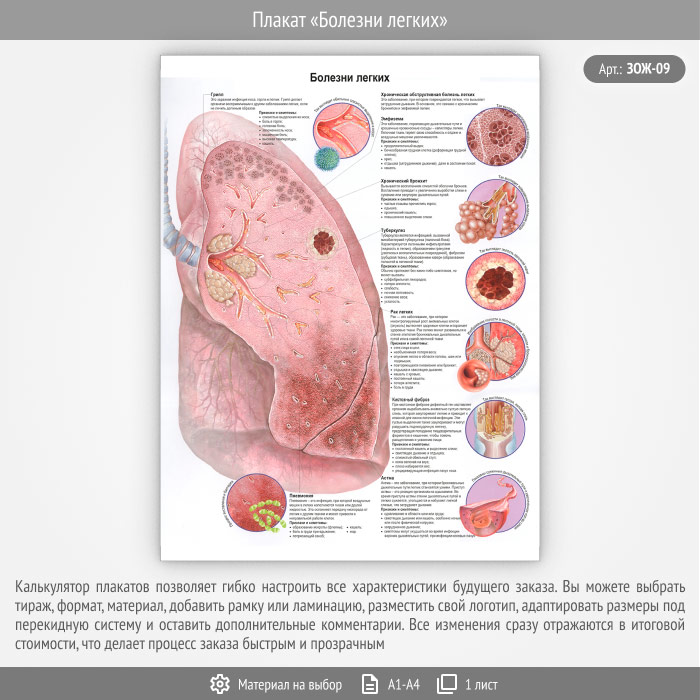 Плакат «Болезни легких» (ЗОЖ-09, 1 лист) в Альметьевске купить