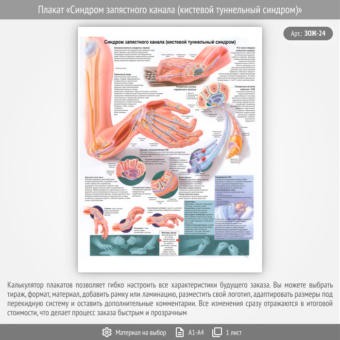 Плакат «Синдром запястного канала (кистевой туннельный синдром)» (ЗОЖ-24, 1 лист) в Альметьевске купить
