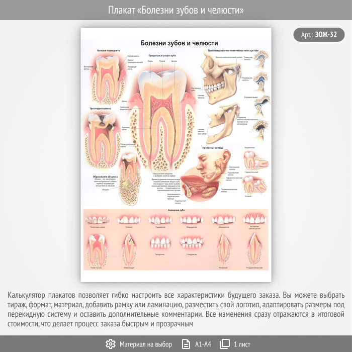 Плакат «Болезни зубов и челюсти» (ЗОЖ-32, 1 лист) в Альметьевске купить